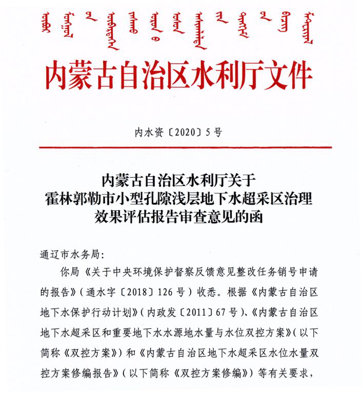 疫情防控期間,我公司始終堅持疫情防控和客戶服務兩手抓、兩不誤、兩促進,由我公司負責的《霍林郭勒市小型孔隙淺層地下水超采區治理效果評估報告》順利取得自治區水利廳批復。